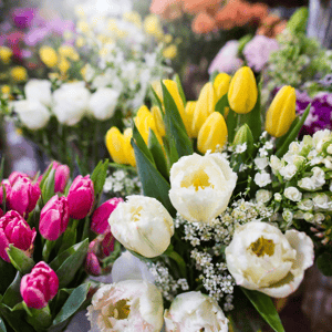 | Saisonale Blumen | Frühling: Tulpen, Callas, Pfingstrosen Sommer: Sonnenblumen, Pfingstrosen Ganzjährig erhältliche Schnittblumen: Rosen, Chrysanthemen, Nelken, Schwertlilien, Lisianthus, Alstroemerien, Lilien, Orchideen, Hortensien, Gerbera |