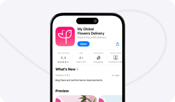 Jeden Tag fügen unsere Partner aus aller Welt neue Blumen und Geschenke zu unserer Plattform hinzu. Bei MyGlobalFlowers können Sie sicher beliebige Waren mit Lieferung in jede beliebige Stadt bestellen.