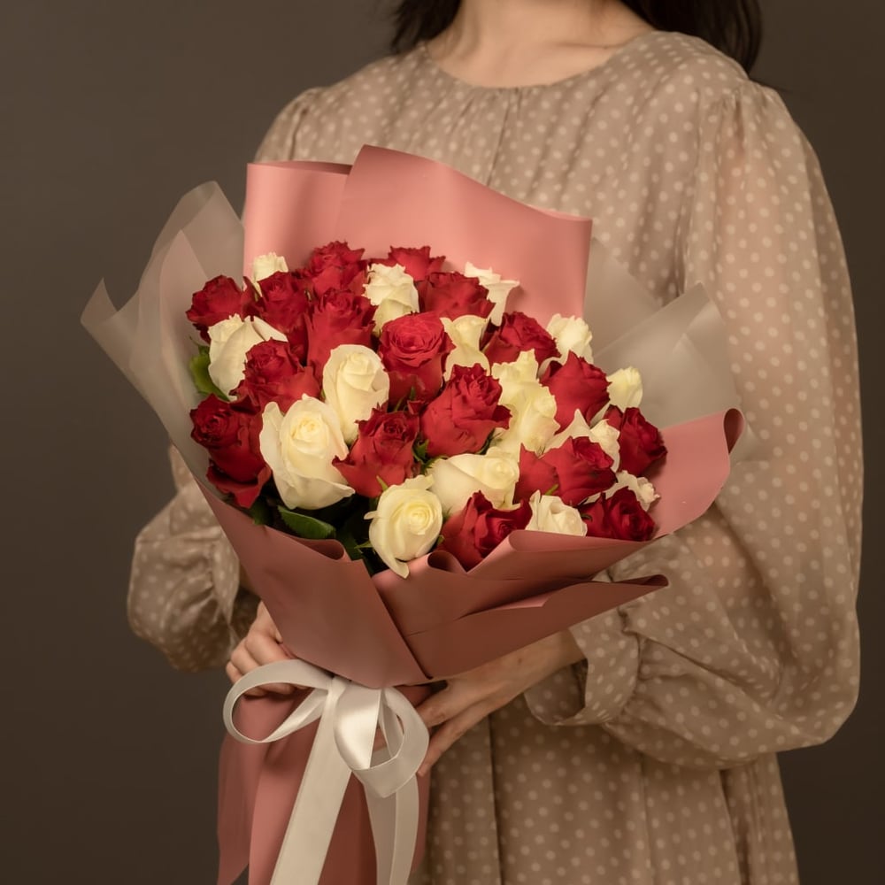 Blumenstrauß '35 Red and White Kenyan Roses'