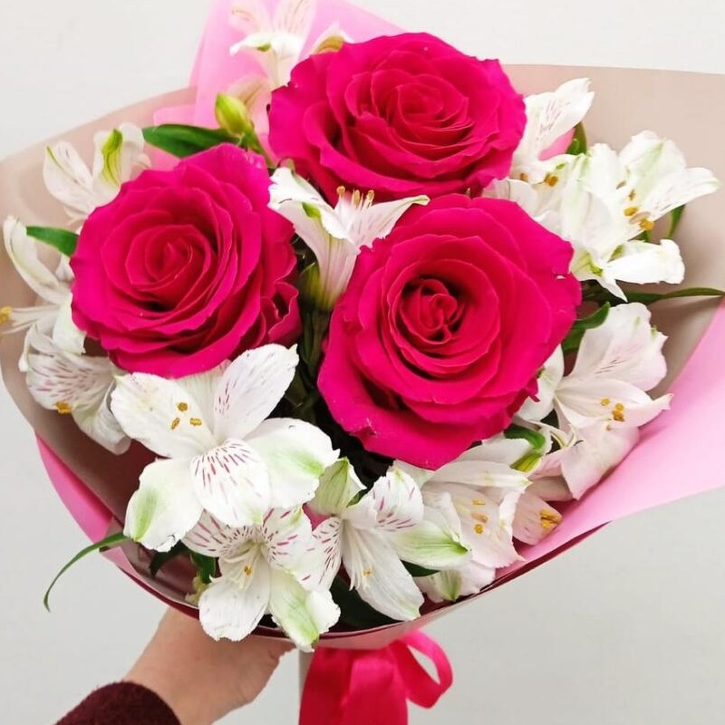 Blumenstrauß aus Rosen und Alstroemerien