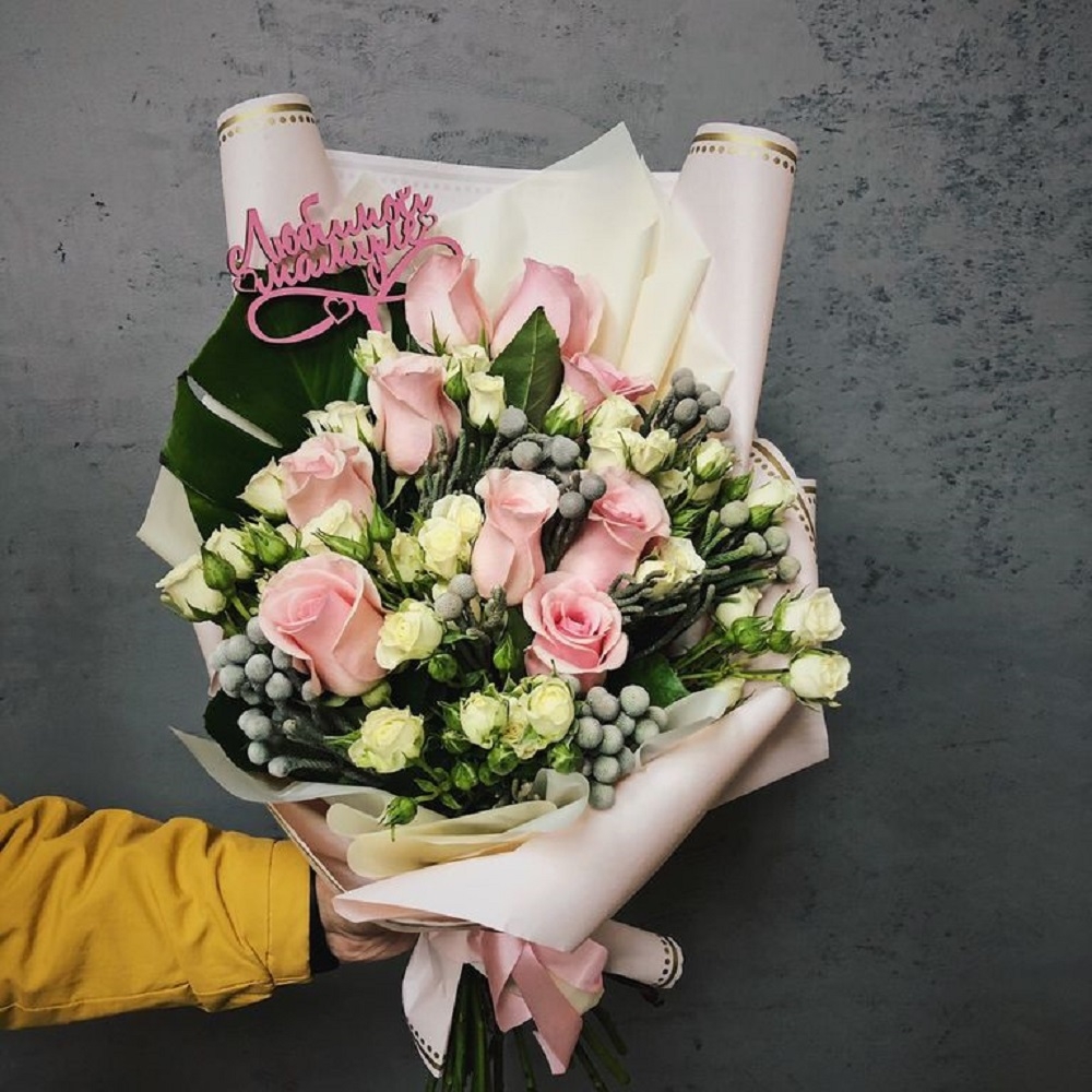 Blumenstrauß aus Rosen und Eustoma für Mama