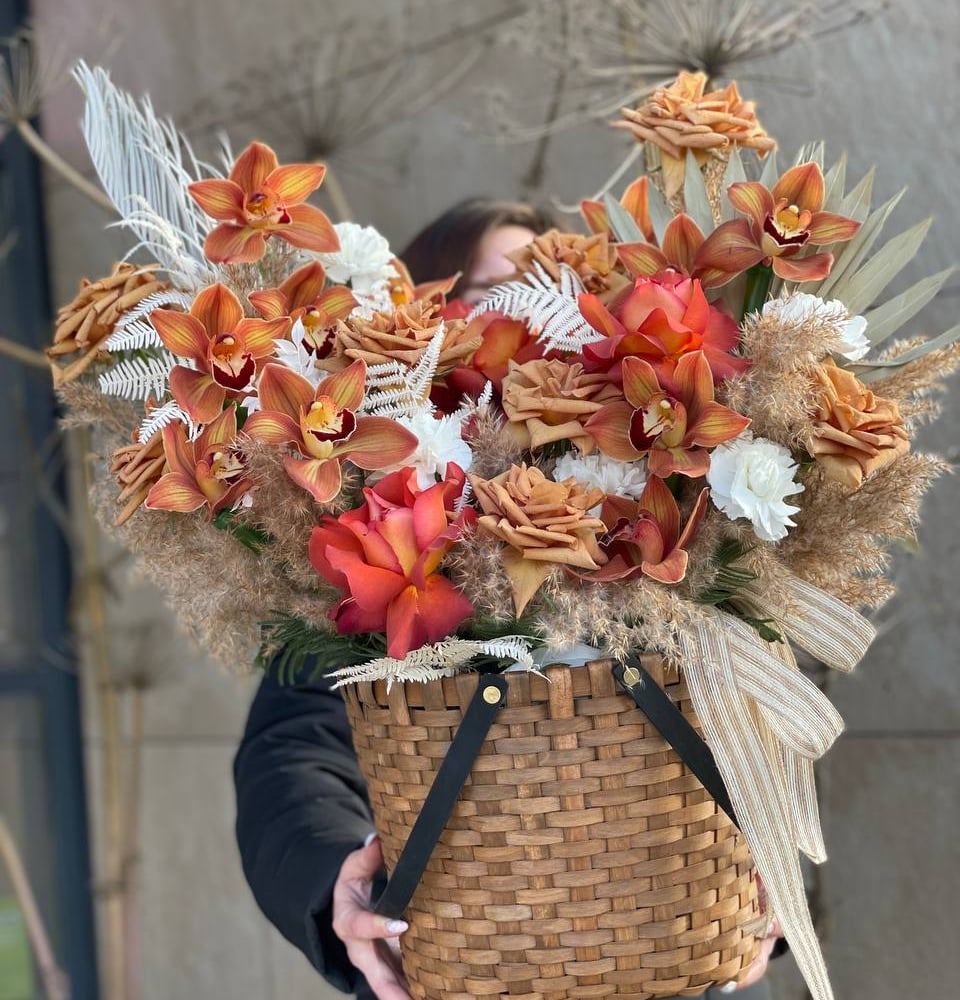 Blumenkorb 'Caramel basket with flowers'