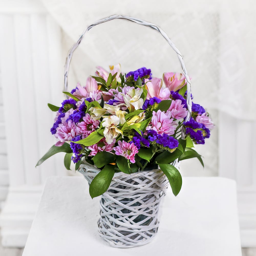 Blumenkorb 'Damenkorb: Chrysanthemen und Alstroemerien'