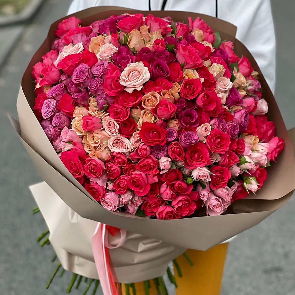 Ein luxuriöser Strauß besteht aus 101 Zweigen von Strauchrosen.