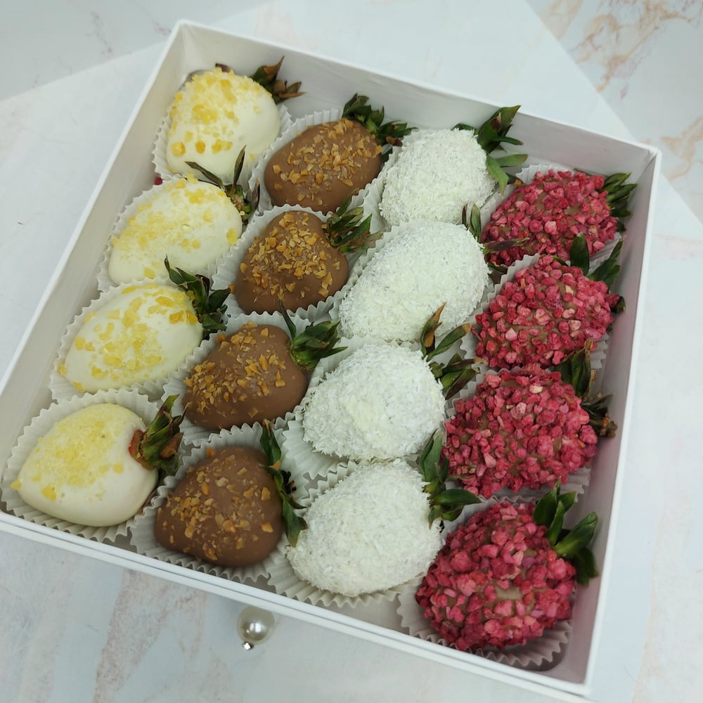Erdbeeren in zarter Schokolade sind eine ausgezeichnete Wahl für diejenigen, die ein köstlicheres und harmonischeres romantisches Set geben möchten. Die Verpackung sieht sehr stylisch aus und die E...