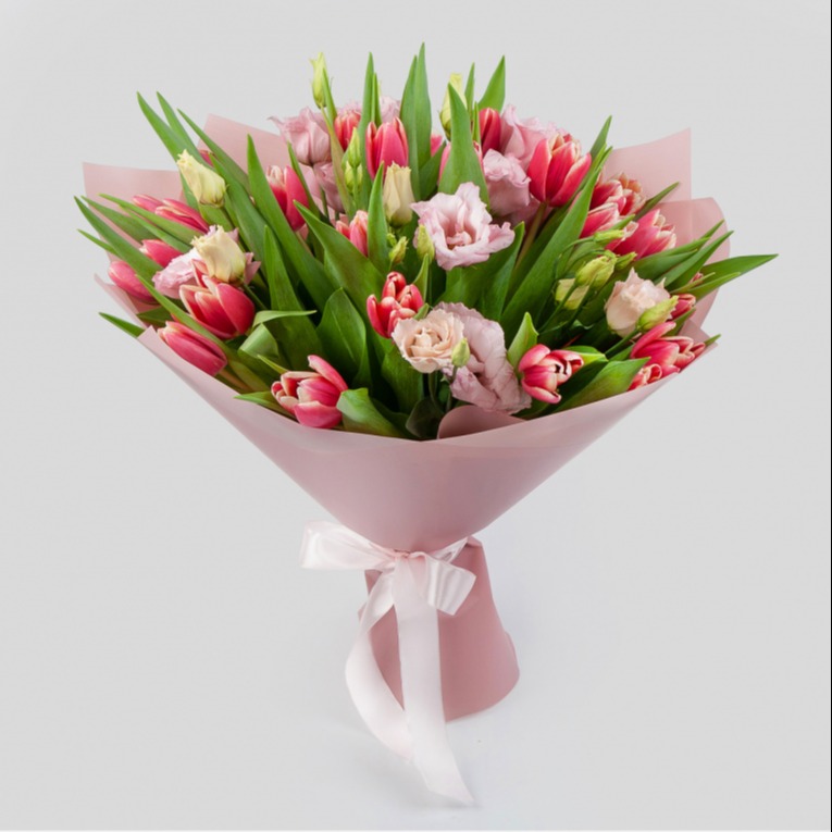 Blumenstrauß 'Frühlingspalette (rosa-scharlachrot)'