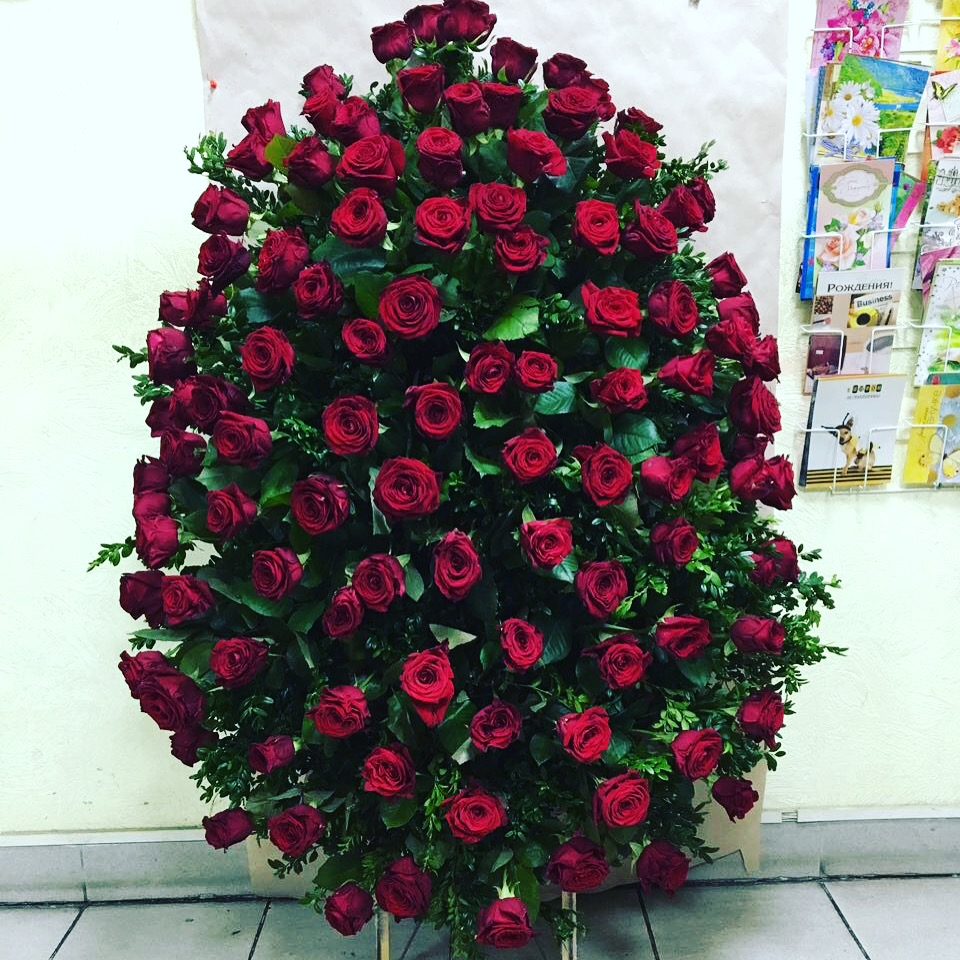 Funeral wreath of red roses