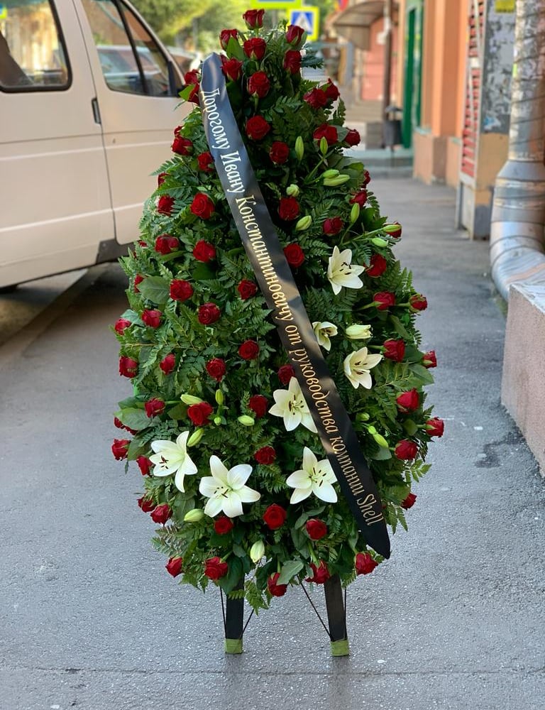 Funeral wreath of red roses and lilies