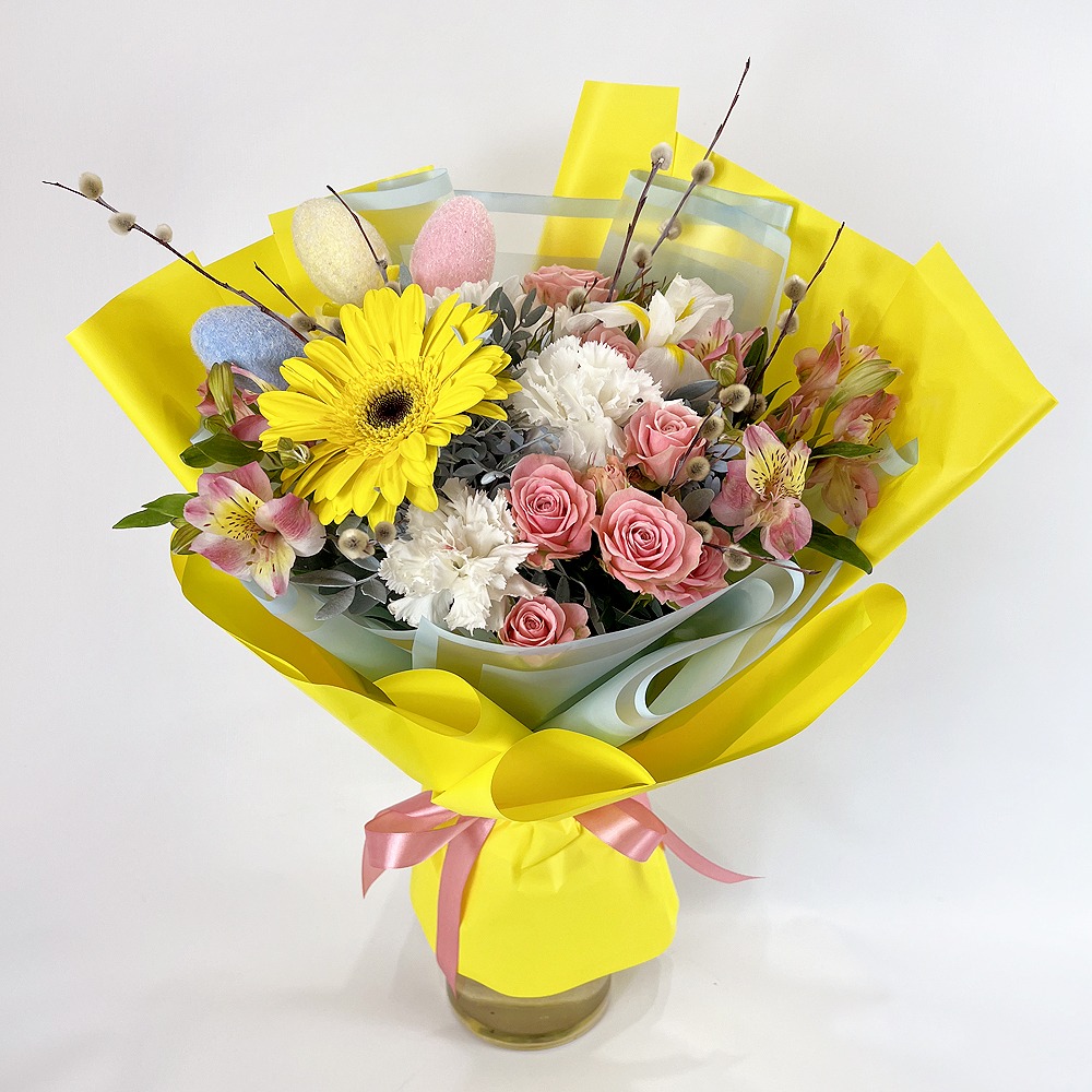 Der Strauß "Helles Fest" ist eine leuchtende und farbenfrohe Kombination aus Gerbera, Alstroemerien, Buschchrysanthemen und Rosen, Iris, Nelken, Pistazien und Weide. Dieser Strauß wird ein wunderbares Geschenk für jeden Anlass sein, sei es eine Hochzeit, ein Jubiläum oder einfach der Wunsch, einen lieben Menschen zu erfreuen. Gerbera und Alstroemerien symbolisieren Freude und Glück, Buschchrysanthemen verleihen dem Strauß Raffinesse und Eleganz, während Rosen ihn heller und intensiver machen. Iris und Nelken geben dem Strauß Zartheit und Sinnlichkeit, und Pistazie und Weide sorgen für Originalität und Stil. Zusammen schaffen sie eine harmonische und stilvolle Komposition, die niemanden gleichgültig lässt. Der Strauß "Helles Fest" kann in verschiedenen Farbtönen gestaltet werden, von sanften Pastelltönen bis hin zu leuchtenden und kräftigen, sodass Sie die Option wählen können, die genau zu Ihnen passt. Verpassen Sie nicht die Gelegenheit, Ihre Lieben zu erfreuen! Schenken Sie ihnen den Strauß "Helles Fest" und genießen Sie ihre aufrichtige Freude!