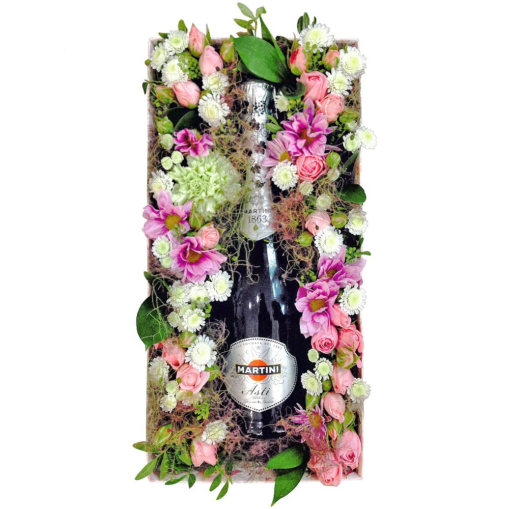 Das Geschenkset 'Italienische Motive' ist eine atemberaubende Komposition aus Chrysanthemen, Strauchrosen, Nelken, Acker-Hellerkraut, Ruscus und Cotinus. Diese wunderschönen Blumen sind in einen Steckschaum arrangiert, um ihre Frische und Schönheit zu bewahren. Das Bouquet wird in einer eleganten Verpackungsbox geliefert und enthält eine Flasche Champagner Martini Asti als Gratiszugabe. Das Bouquet ist eine perfekte Wahl, um Liebe, Glück und Jubel auszudrücken. Es ist eine einzigartige Kombination von Farben und Texturen, die ein italienisches Flair verleiht. Egal zu welchem Anlass, das Italienisches Motiv Bouquet ist ein beeindruckendes Geschenk, das die Herzen der Menschen erobert. Genieße die Schönheit und den Duft dieser besonderen Komposition.