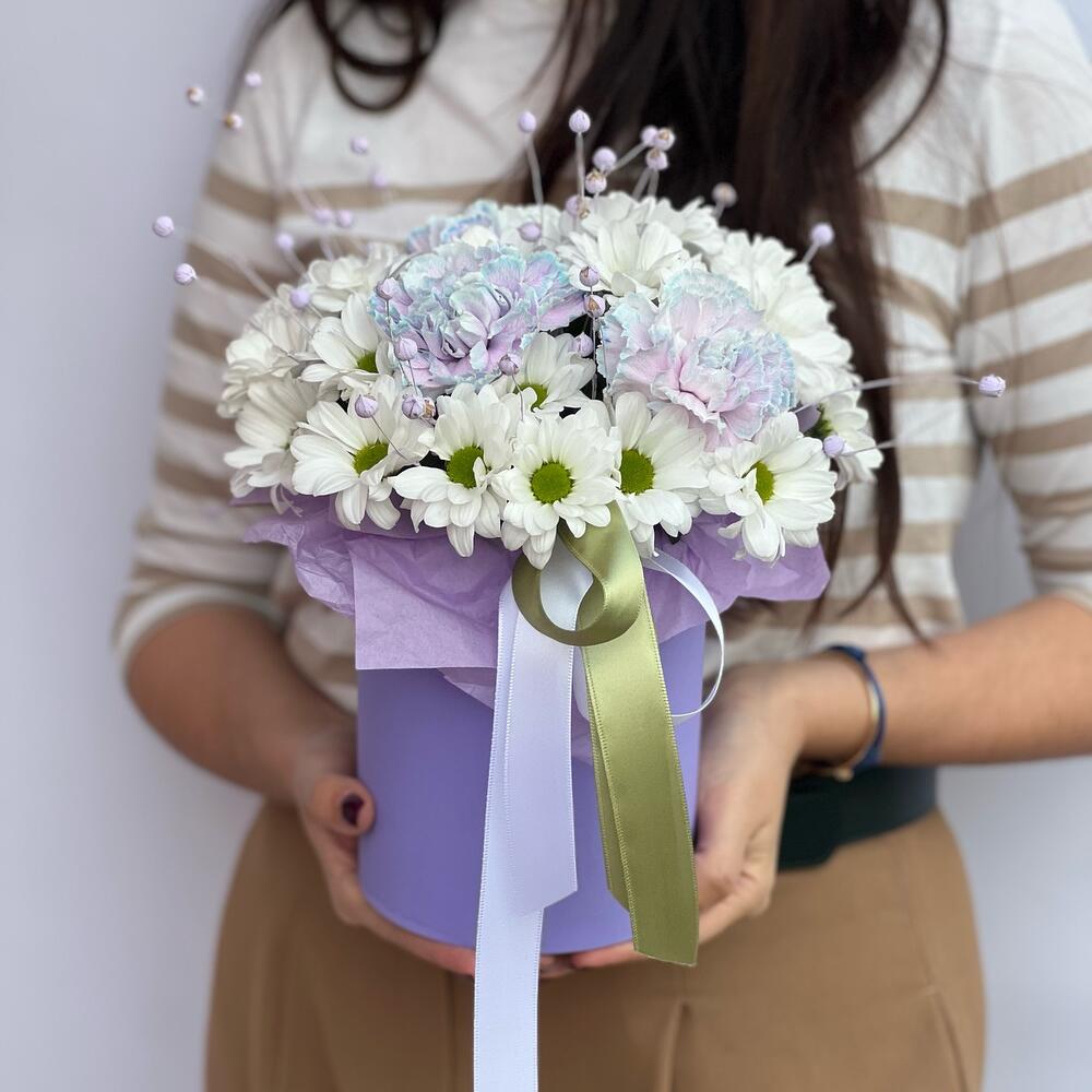 Blumenromantik: Hutschachtel mit Chrysanthemen