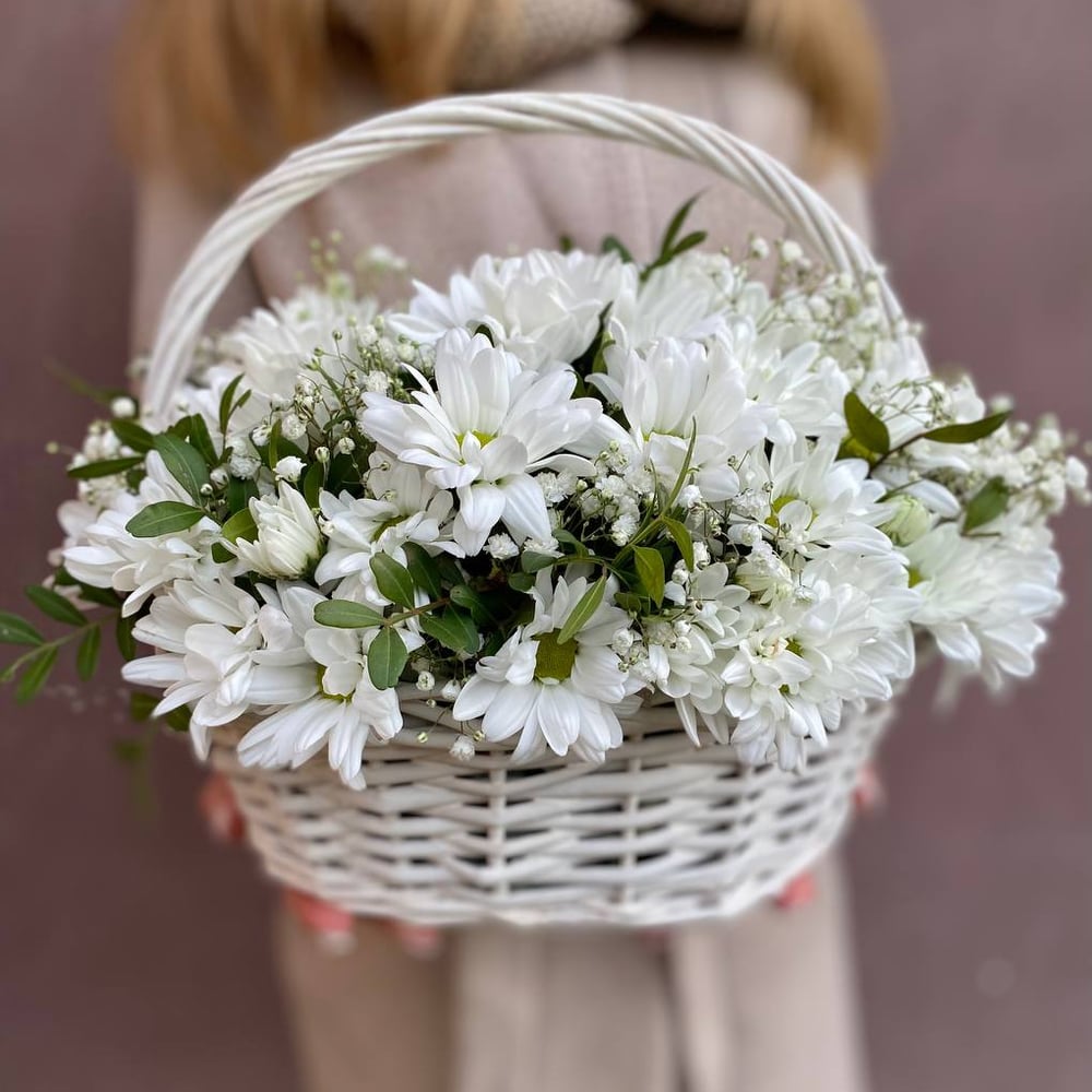 Blumenkorb 'Korb mit Gänseblümchen und Schleierkraut'