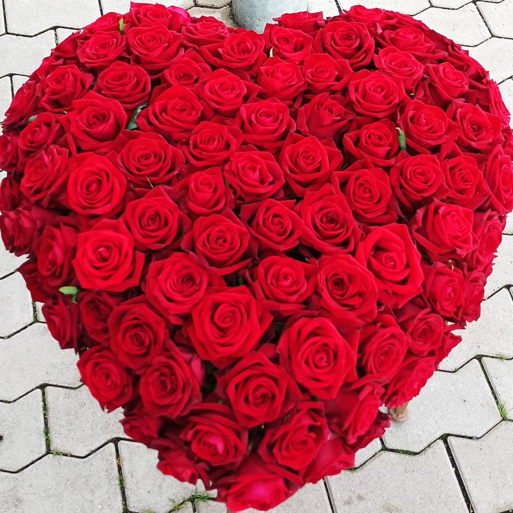 Ein imposantes Herz aus rund 120 roten Rosen.