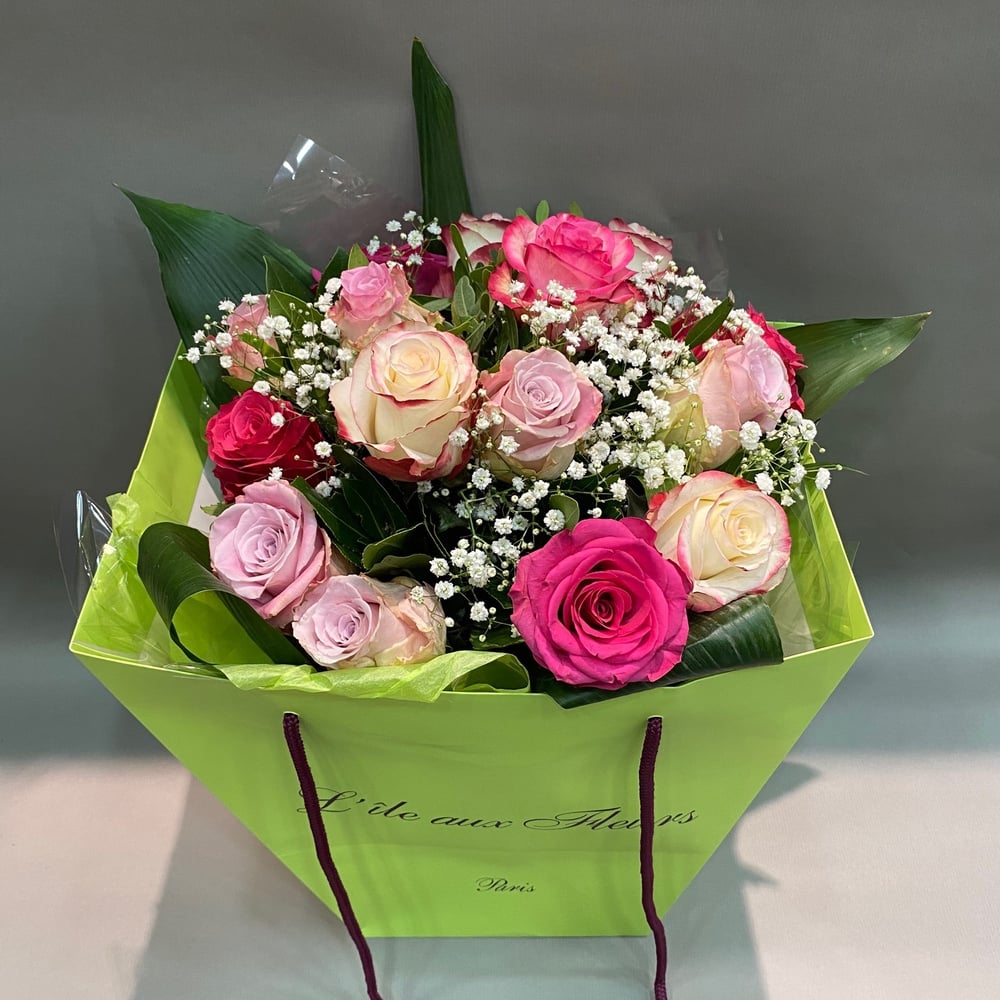 Pinke Blumenstrauß in einer Tasche