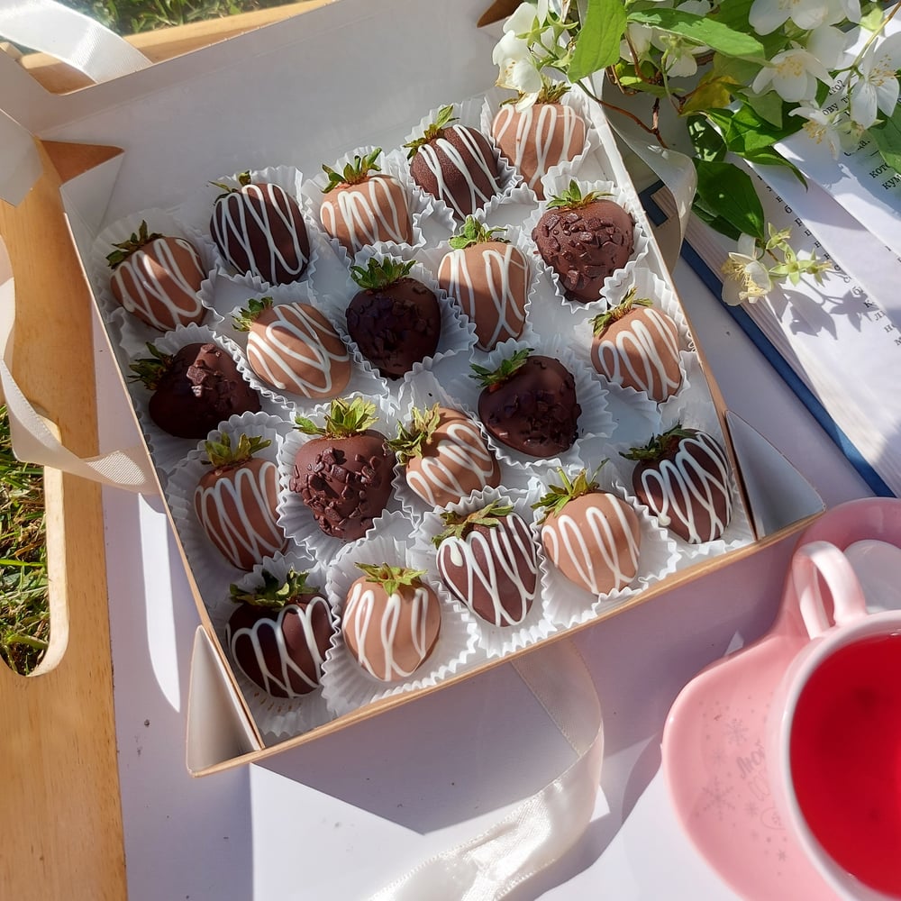 Erdbeeren in zarter Schokolade sind eine ausgezeichnete Wahl für diejenigen, die ein köstlicheres und harmonischeres romantisches Set geben möchten. Die Verpackung sieht sehr stylisch aus und die E...