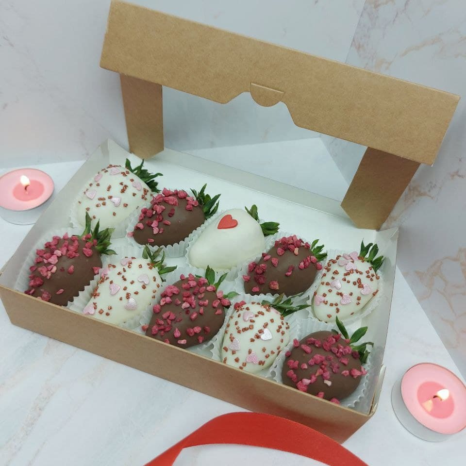 Erdbeeren in zarter Schokolade sind eine ausgezeichnete Wahl für diejenigen, die ein köstlicheres und harmonischeres romantisches Set geben möchten. Die Verpackung sieht sehr stylisch aus und die E...