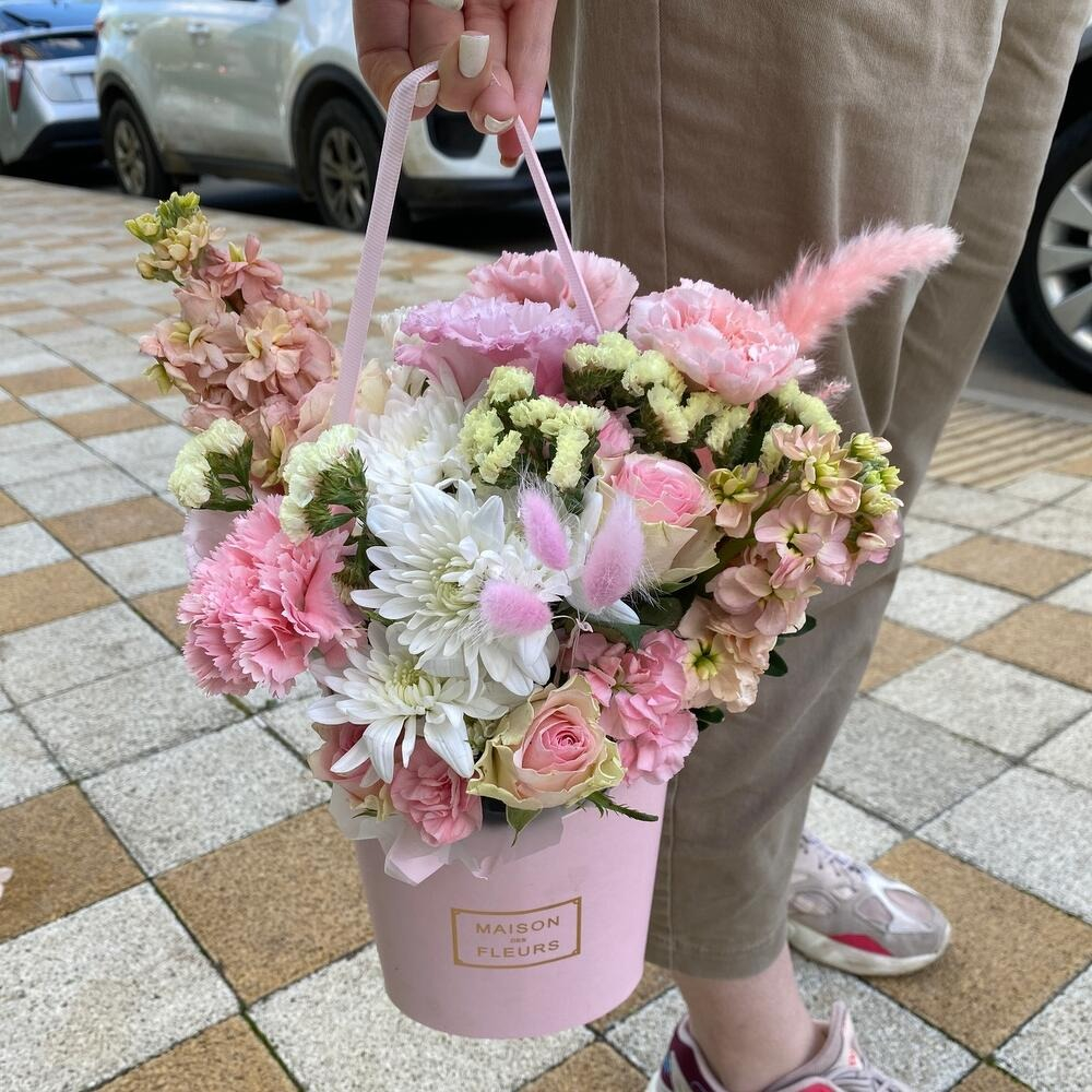 Blumenbox 'Süße Schachtel mit Chrysantheme und Rose'