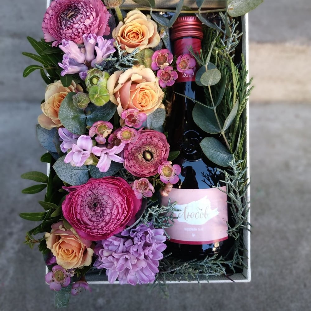 Wein- und Blumen-Geschenkbox